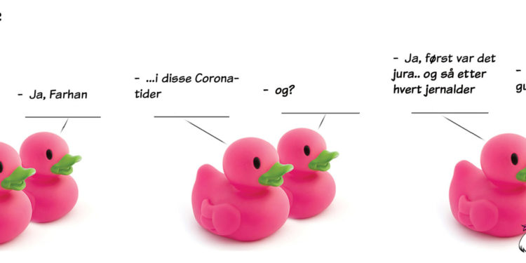 | – Du, Christer? | – Ja, Farhan | – i disse Corona-tider | – og? | – Ja, først var det jura.. og så etter hvert jernalder | – neste blir gummialderen ja!